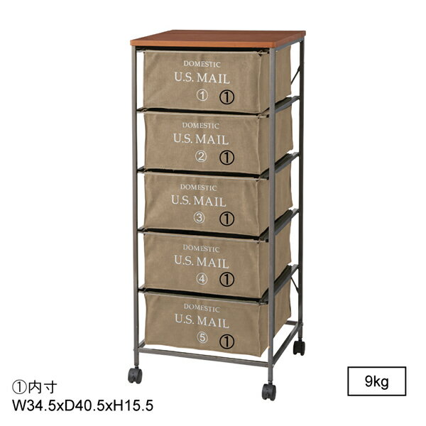 送料無料 チェスト 5段 幅43cm キャスター付き スチール 木製 ローチェスト たんす 箪笥 小物収納 キッチン収納 サニタリー ランドリー リビングチェスト 収納家具 飾り棚 収納棚 電話台 FAX台 高級感 レトロ モダン 北欧 おしゃれ ベージュ